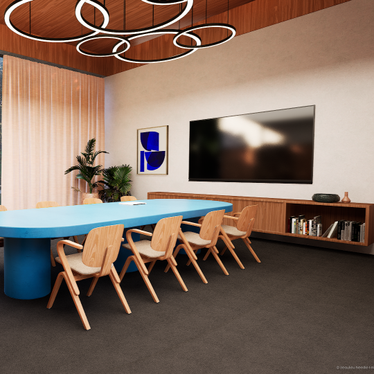 Die fühlbare Oberflächenstruktur schafft visuelle Tiefe und verbessert Akustik sowie Trittsicherheit. Gleichzeitig ist der Belag stuhlrollenfest, antistatisch und farbbeständig – ideal für Arbeitsumgebungen, in denen Flexibilität und Bewegung zum Alltag gehören. Auf Treppen überzeugt REWIND 900 BRL durch Stabilität und ein angenehmes Laufgefühl.